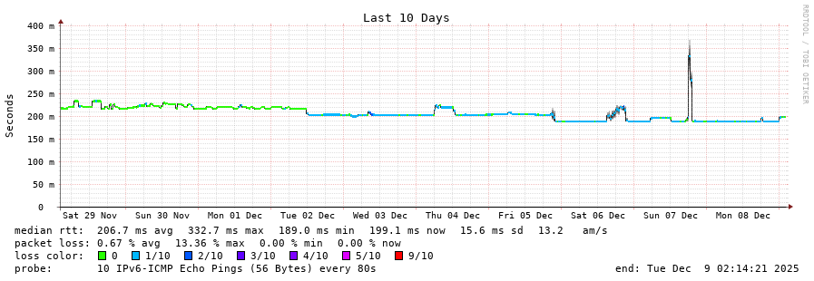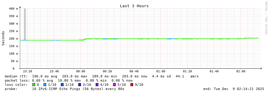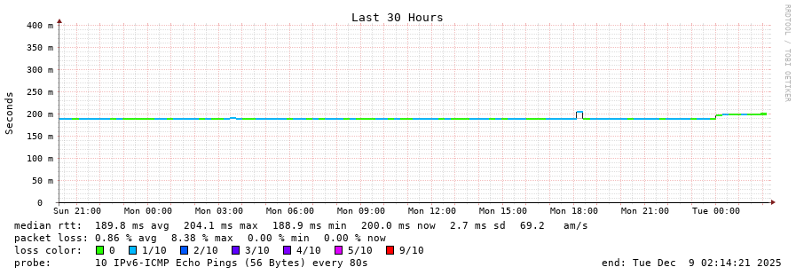 traceroute to 2001:4350:1:1::ff90 (2001:4350:1:1::ff90), 30 hops max, 80 byte packets - Generated at 2025-12-07 04:00:01