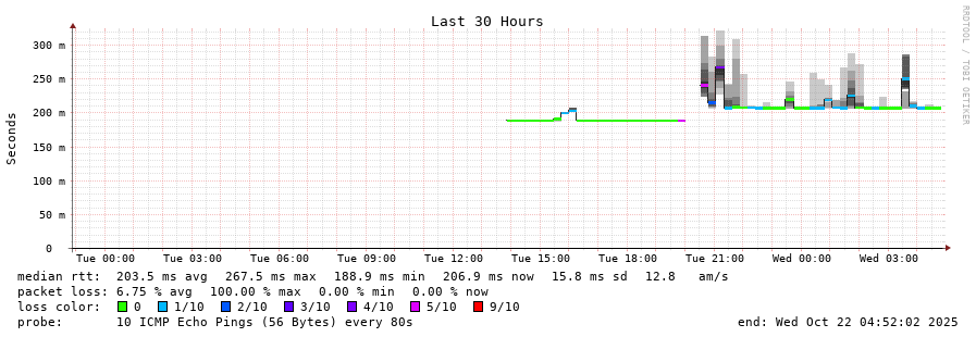 22 > 105.69.64.1 (105.69.64.1) [AS36884] 197.393ms 190.452ms 190.454ms
