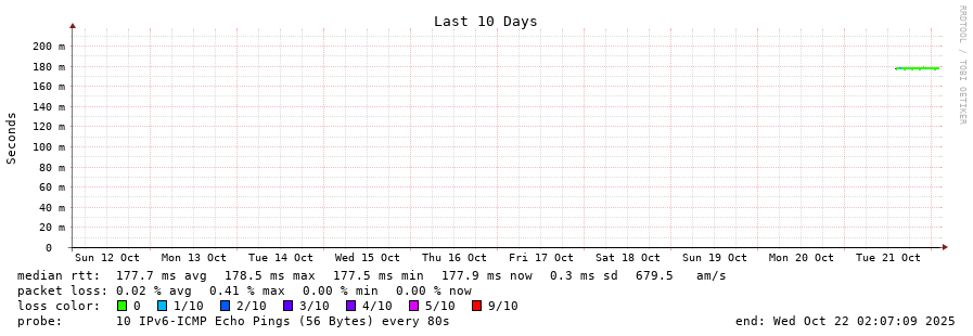 traceroute to 2a0b:2f00:0:234::151 (2a0b:2f00:0:234::151), 30 hops max, 80 byte packets - Generated at 2025-10-21 20:30:01