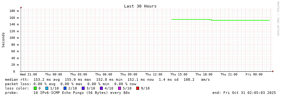 traceroute to 2001:41d0:302:1000::18:665e (2001:41d0:302:1000::18:665e), 30 hops max, 80 byte packets - Generated at 2025-10-30 18:00:01